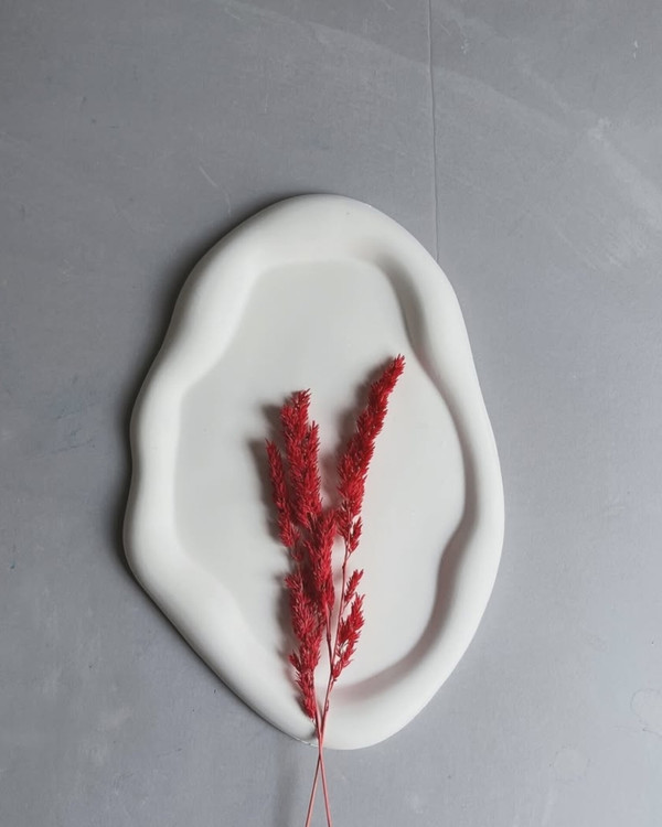 «اولش فقط یه یه دایرکت بود نوشت: میخوام یه سینی داشته باشم، اما نه معمولی… یه چیزی که انگار خودش یه قصهست! با خودم گفتم، چرا که نه؟ شکل گرفت… نه صاف، نه قرینه… درست مثل لحظههایی از زندگی که نظم نمیخوان، فقط باید واقعی باشن. نتیجه؟ یه سینی که شبیه هیچکدوم نیست، اما دقیقاً همونه که باید باشه… دفرمه، اما دلبر!» سفارش در رنگهای مختلف پذیرفته میشود.